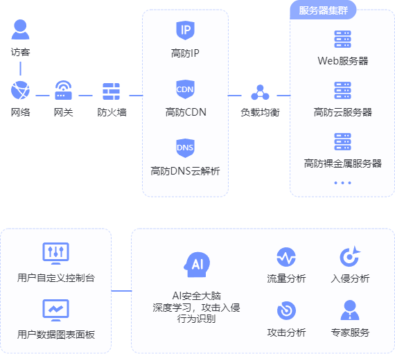 基于先进的特征识别算法进行精准识别恶意访问者,采用多种手段予以精确的打击,抵御大流量、各类应用层等攻击。